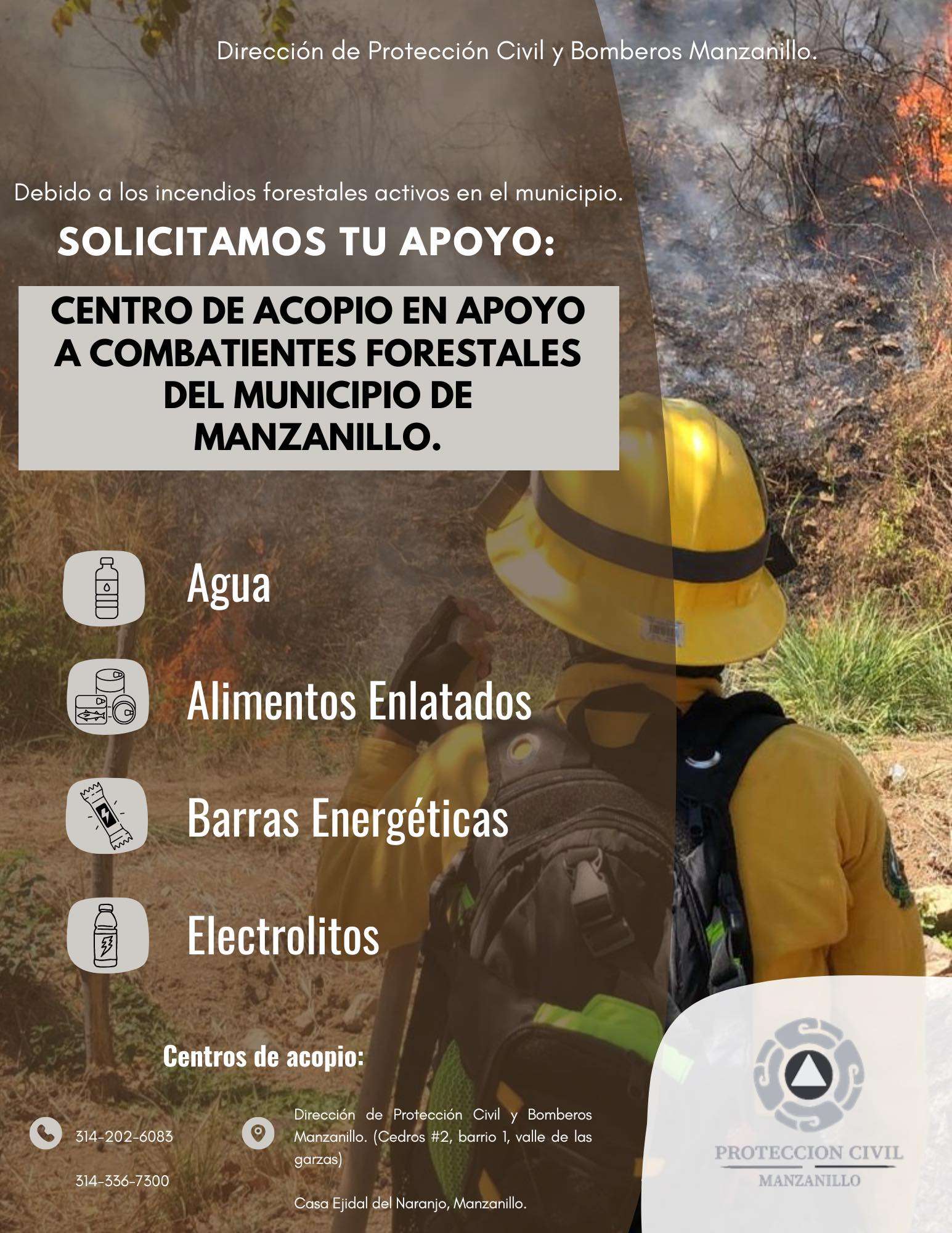 CENTROS DE ACOPIO para combatientes forestales de Manzanillo